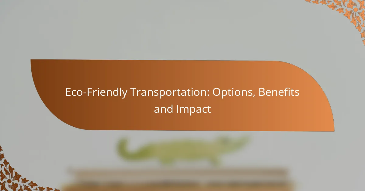 Eco-friendly transportation encompasses a range of options such as electric vehicles, bicycles, public transit, carpooling, and walking, each designed to minimize environmental impact while fulfilling mobility needs. By choosing sustainable transport methods, individuals can enjoy financial savings and contribute to improved public health and air quality, ultimately fostering healthier communities and vibrant urban spaces.